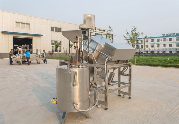 The flavoring machine uses hoists to feed materials automatically and hoists use food-grade raw materials to ensure food safety. The seasoning cylinder uses screw rod for quantitative feeding and an advanced sprinkling system to ensure uniform seasoning and adjustable screw rod speed. The imported oil injection head is adopted, the oil quantity is adjustable, the spraying is uniform and the heating cylinder is provided with an automatic electric heating system.
