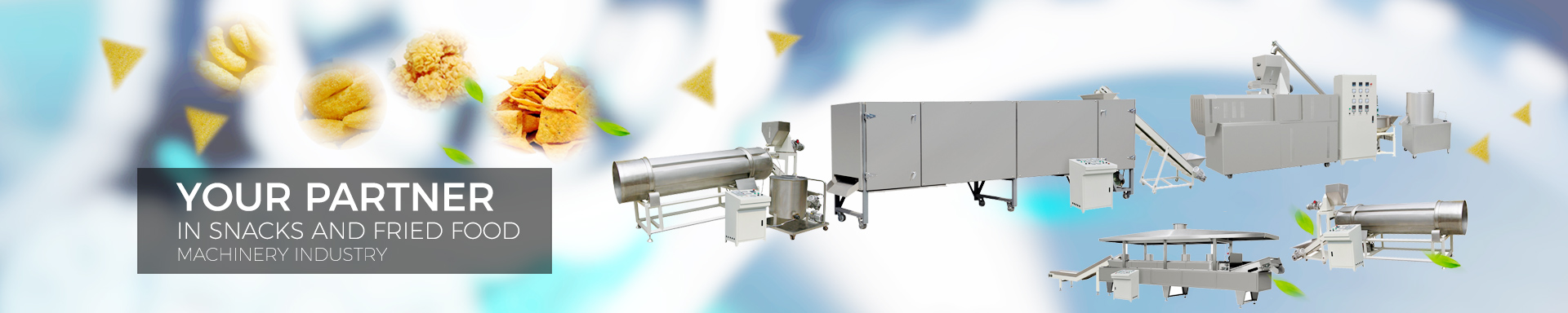The flavoring line is composed of elevator, rotary drum, powder sprayer and oil sprayer.